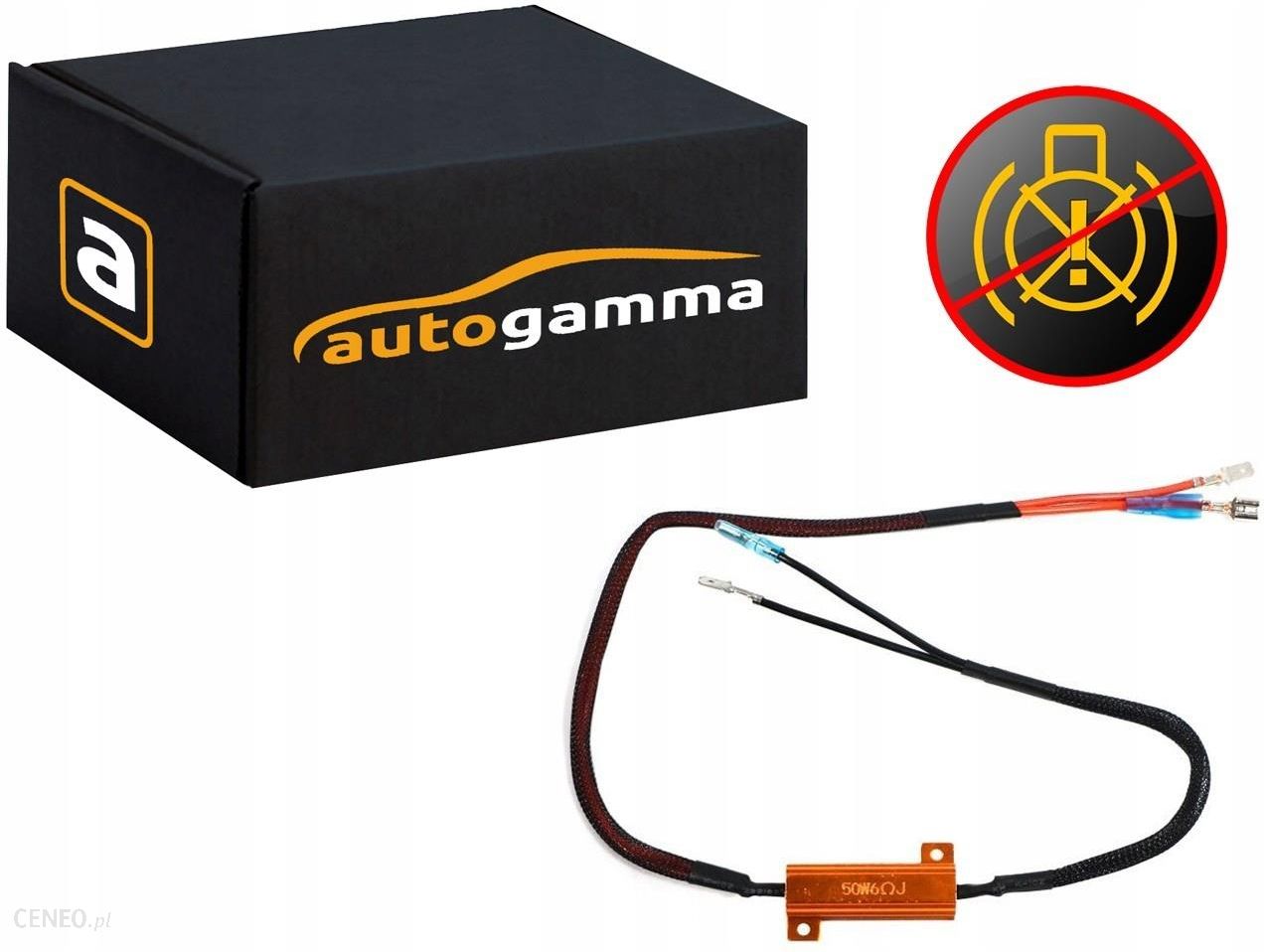 Rezystor, wiązka dekodera błąd żarówki 50W, 6 Ohm do żarówek H1Koniec z pojawiającym się błędem spalonej żarówki.Najwyższe parametry:Typ: Rezystor, Opornik biernyMoc znamionowa: 50WRezystencja: 6 OhmObudowa: AluminiumZastosowanie: Technologia LEDNapięcie: 12VTemperatura pracy: -40°C do + 50°CCena dotyczy 1 szt.Brak błędów i uciążliwych powiadomieńW samochodach wyposażonych w system sygnalizacji o przepaleniu żarówek, wymiana tradycyjnej żarnikowej żarówki na zamiennik LED często powoduje pojawienie się błędu oświetlenia. Ponadto w samochodach z bimetalicznym przerywaczem kierunkowskazów stosowanie żarówek LED powoduje szybsze miganie kierunkowskazu. Rozwiązaniem jest dołożenie rezystora pełniącego funkcję dodatkowego obciążenia układu eliminując pojawianie się komunikatu o błędzie oświetlenia.Rezystor o rezystancji nominalnej 6 Ohm podpinamy równolegle do układu zasilania 12V DC.Temperatura pracyFiltr Canbus stosowany jako dodatkowe obciążenie, podczas pracy nagrzewa się do wysokich temperatur. Konieczny jest montaż do metalowych elementów, które będą mogły odprowadzić temperaturę z powierzchni obudowy rezystora.Szukasz innych rozmiarów?A może innego produktu, który odmieni wygląd Twojego samochodu? Sprawdź nasz pozostały asortyment!Auto Gamma, polska firma działająca w branży motoryzacyjnej od 1993 r. Największy dystrybutor oraz producent części do lamp samochodowych na terenie Polski i Europy.W naszej ofercie skierowanej zarówno do klienta hurtowego, jak i detalicznego, znajdą Państwo setki najwyższej jakości produktów. Wieloletnie doświadczenie w regeneracji i naprawie reflektorów oraz bliska współpraca z producentem sprawia, że wychodzimy naprzeciw potrzebom naszych klientów.Zapraszamy do udanych zakupów.