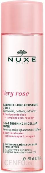 Wskazania:Nuxe Very Rose Łagodząca woda micelarna 3 w 1 oczyszcza skórę twarzy i okolic oczu, usuwając makijaż i zanieczyszczenia.Właściwości:Woda micelarna została wzbogacona o kompleks pochodzenia roślinnego, który łagodzi skórę i nie narusza jej naturalnej równowagi. Pozostawia skórę świeżą oraz delikatną.Składniki aktywne:woda różana – znana ze swoich właściwości kojących i zmiękczających dla każdego typu cery, nawet skóry wrażliwej, kompleks Skin-Respect – w 100% pochodzenia roślinnego, składają się z cukrów nawilżających, które nawadniają i wzmacniają barierę ochronną skóry, micelarne składniki oczyszczające – skutecznie usuwają zanieczyszczenia i makijaż, przy jednoczesnym zapewnieniu dobrej tolerancji skóry.