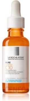 La Roche-Posay Pure Vitamin C10 XL 30 mlLa Roche-Possay Pure Vitamin C10 serum przeciwzmarszczkowe to skoncentrowany preparat pielęgnacyjny z dużą ilością czystej witaminy C, który w widoczny sposób wygładza skórę, wyrównuje koloryt oraz przywraca jej naturalny blask. Został stworzony z myślą o potrzebach cery dojrzałej, o niejednolitym kolorze, szarej, matowej i zmęczonej. Jego łagodna formuła doskonale sprawdza się w pielęgnacji skóry delikatnej.